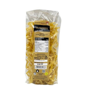 About the product: Homemade pasta made with fresh eggs, fresh milk, and 100% flour and grains from Grevena! Ready in just 3–4 minutes, it's perfect with red sauce, vegetables, or meat