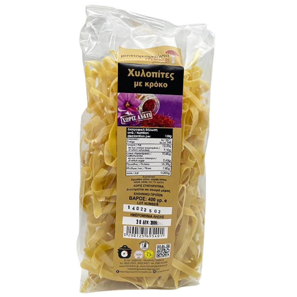 About the product: Homemade pasta made with fresh eggs, fresh milk, and 100% flour and grains from Grevena! Enjoy tagliatelle infused with Kozani saffron — a treasured Greek ingredient known not only for its unique flavor but also for its beneficial properties, thanks to compounds like picrocrocin and crocin. Ready in just 3–4 minutes, it's perfect with red sauce, vegetables, or meat